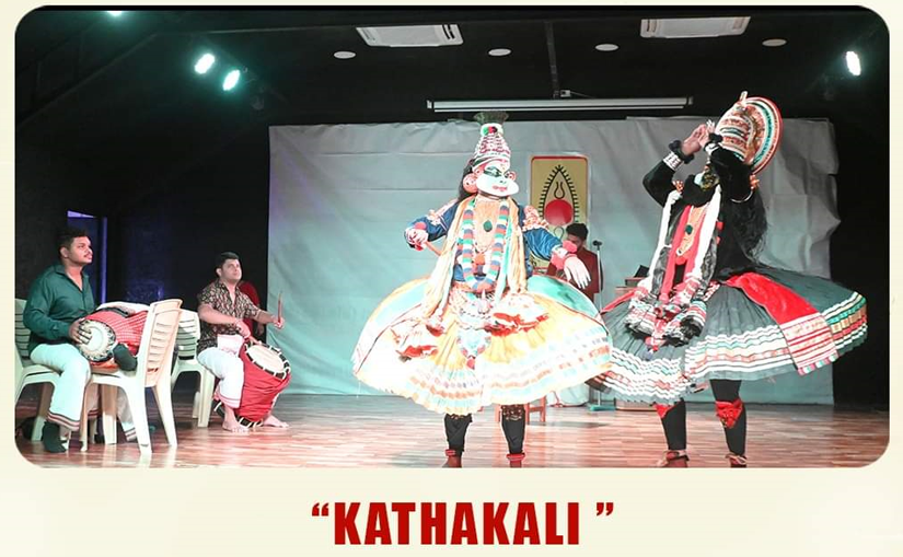 The troupe included distinguished artists such as Mr. Prem Shankar, Mr. Anuraj, Mr. Sai Kumar (singer), Mr. Akhil (drum player), Mr. Sri Hari Maddalam, and Mr. Suresh Arjunarist (manager and demonstrator of the art form). Adding to the evening’s splendor was an exceptional violin performance by Dr. M. Rajan, a maestro of Indian classical music. His soulful compositions perfectly complemented the Kathakali recital, enriching the audience's experience.